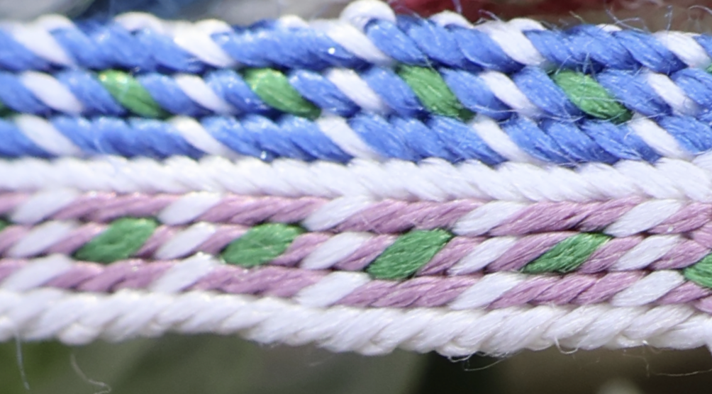 Hier ist mit 11 Brettchen nur ein kleiner Teil der ursprünglich ca. 116 Brettchen breiten Borte nachgewebt worden.