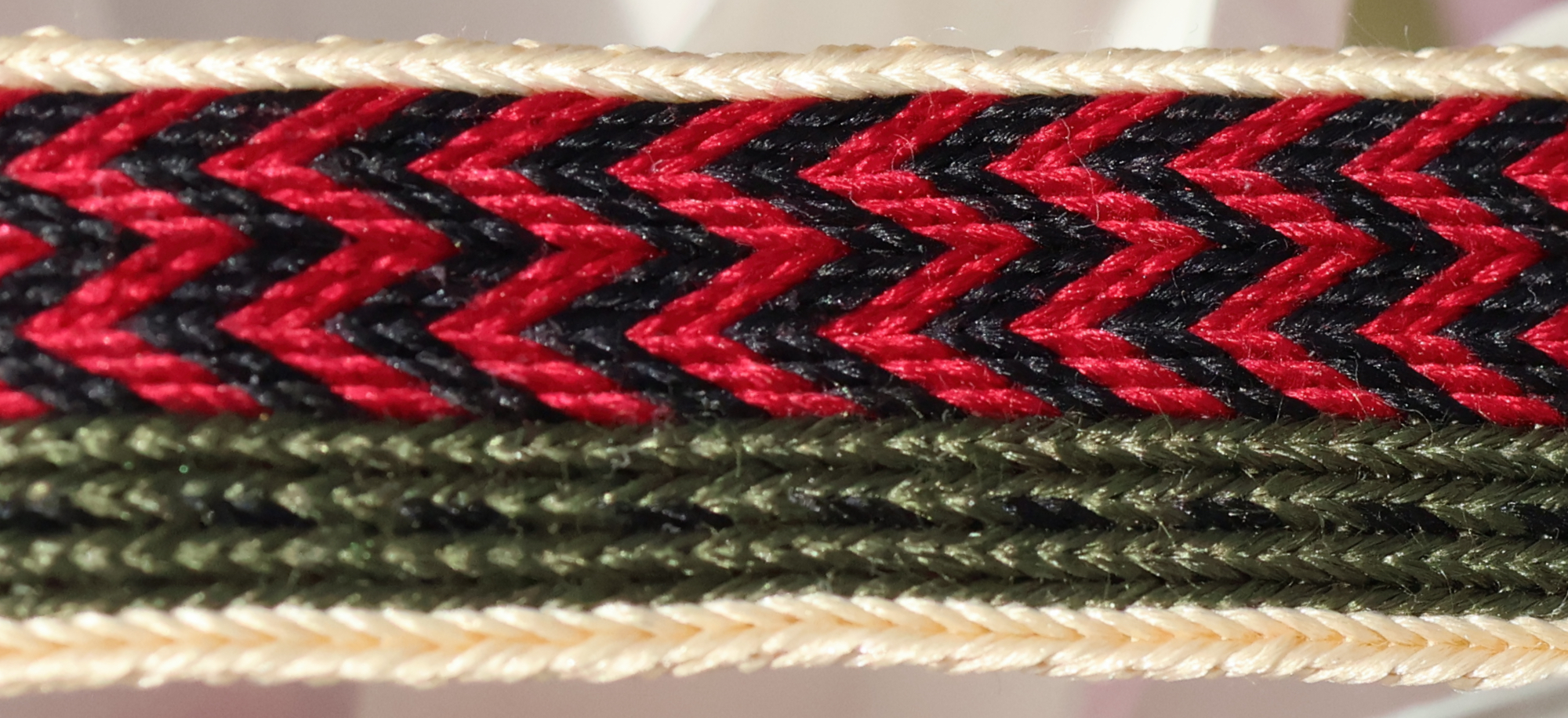 Das Seidenband wurde mit 23 Brettchen gewebt und kontinuierlich in eine Richtung gewebt. Dabei handelt es sich um ein asymetrisches Muster.